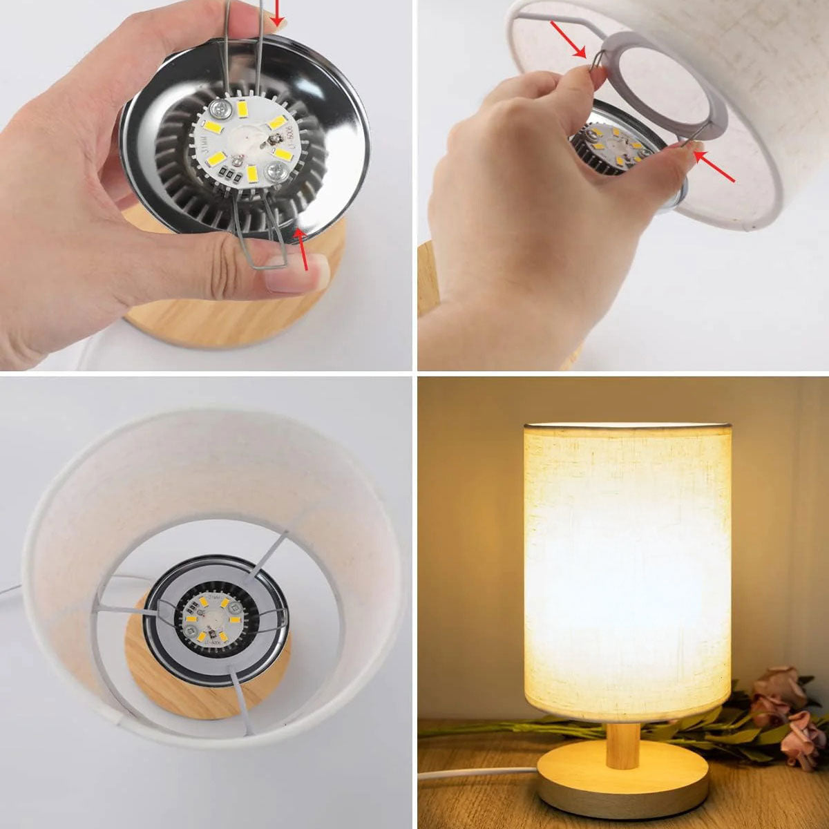 • Premium Material: Made of high-quality wooden base and premium fabric, the fabric of the lampshade is attached to a fireproof PVC lining.